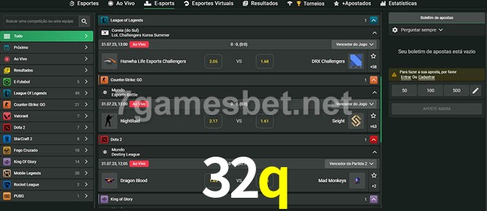 O 32q oferece uma grande seleção de opções de apostas em e-sports com probabilidades competitivas